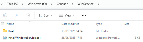 As a result, you should find your installation script in C:\Crosser\WinService\InstallWindowsService.ps1.